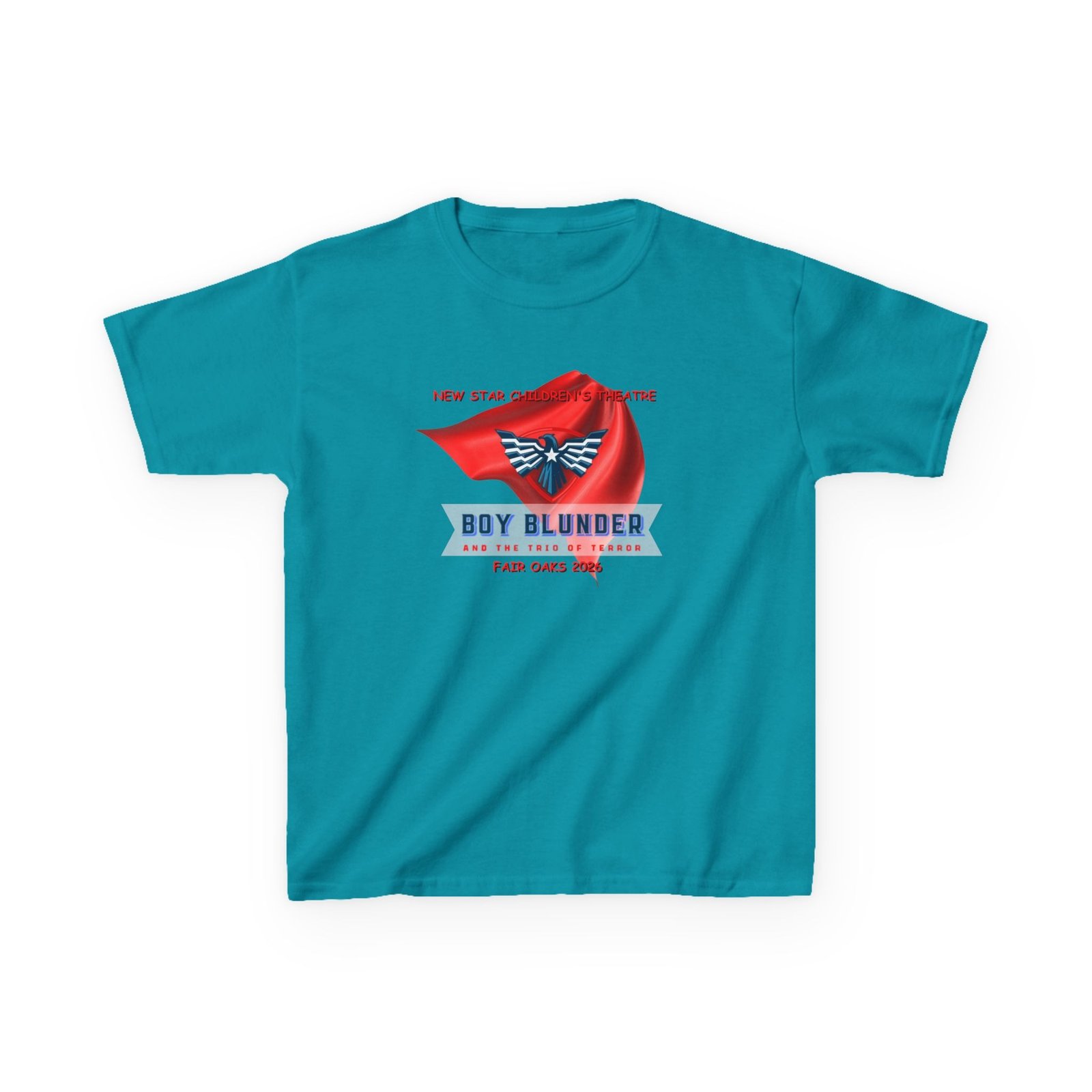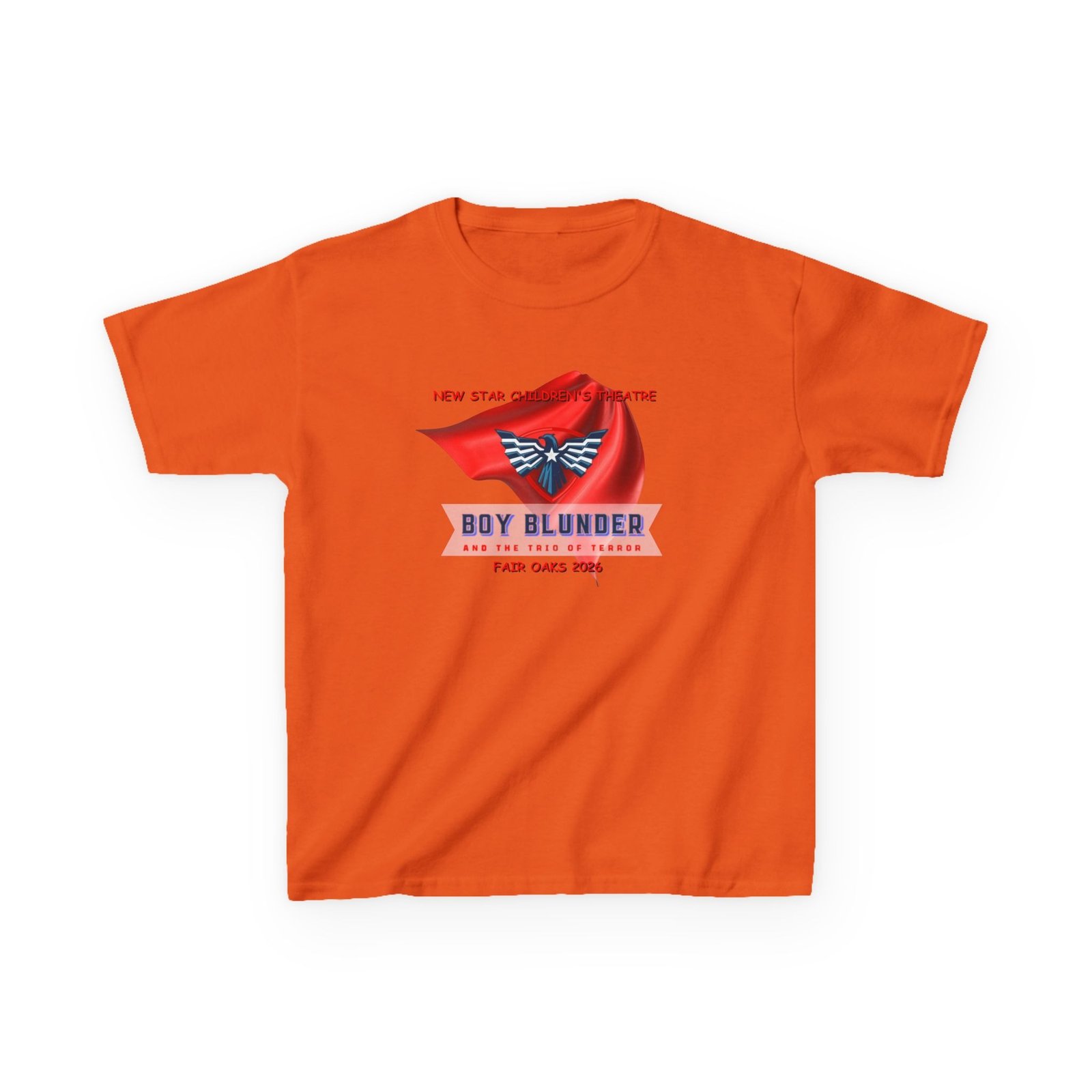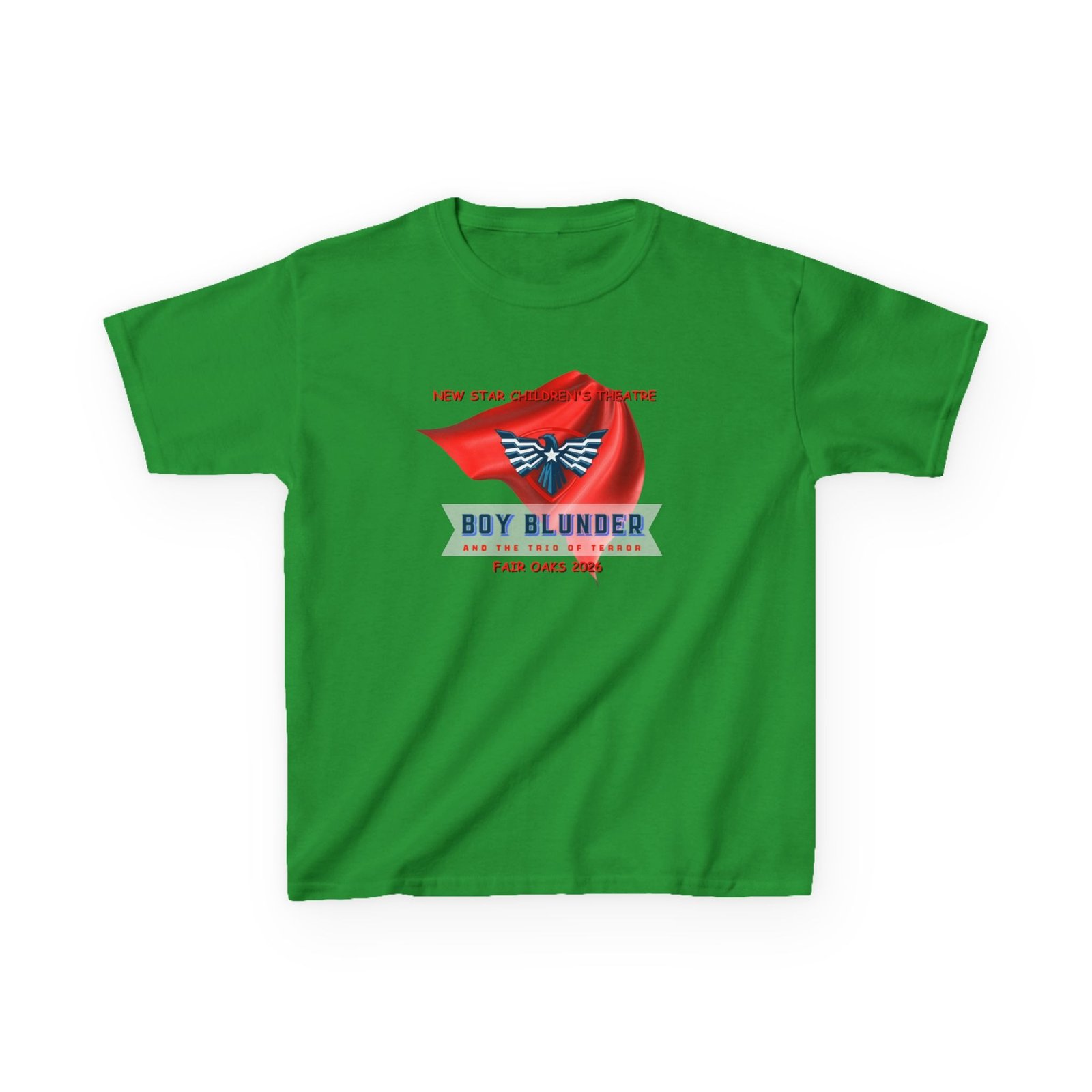 For those passionate about theatre, find the star design “Boy Blunder and the Trio of Terror” Kids Tee Shirt in multiple sizes. This ensures you get the perfect fit for your theatre-loving child.