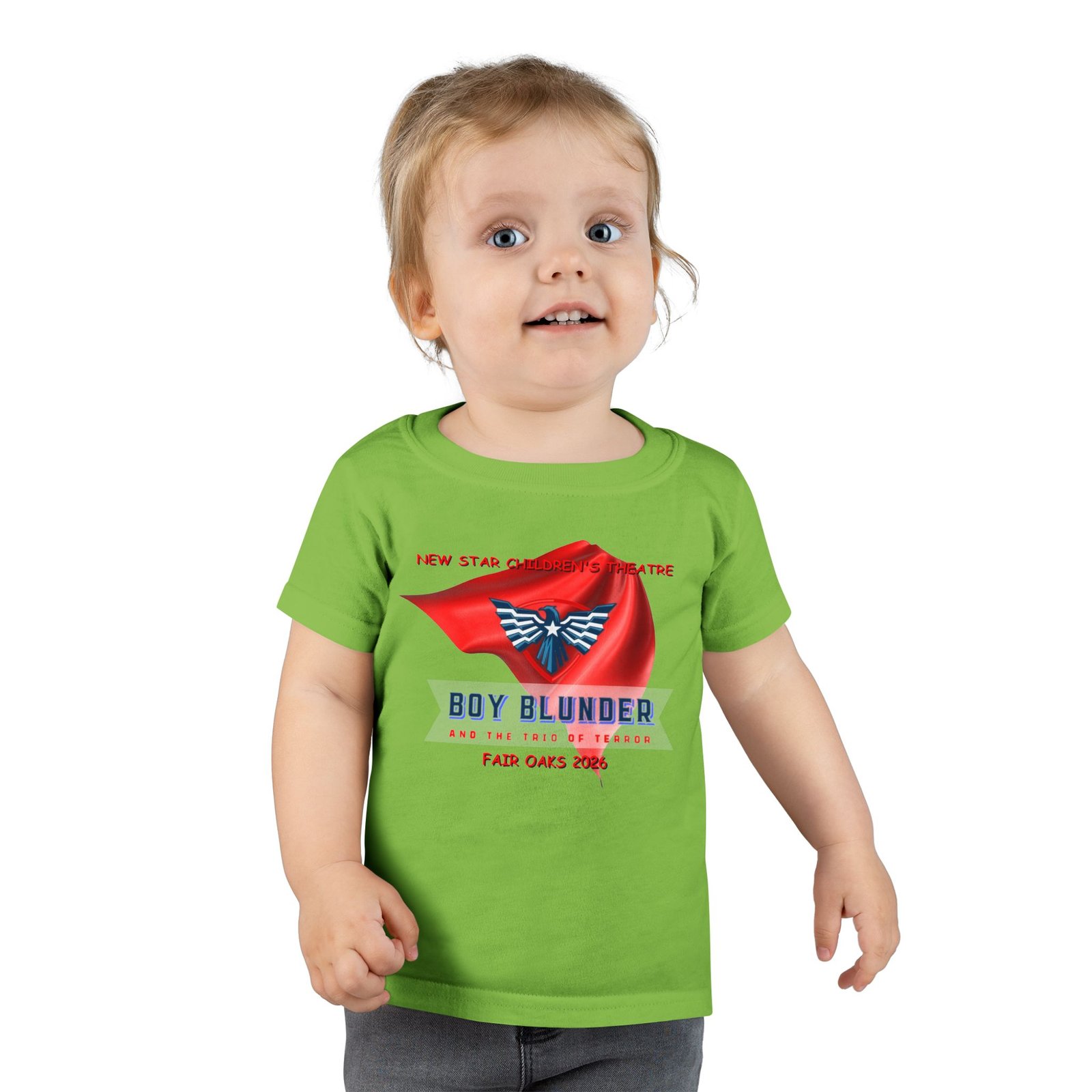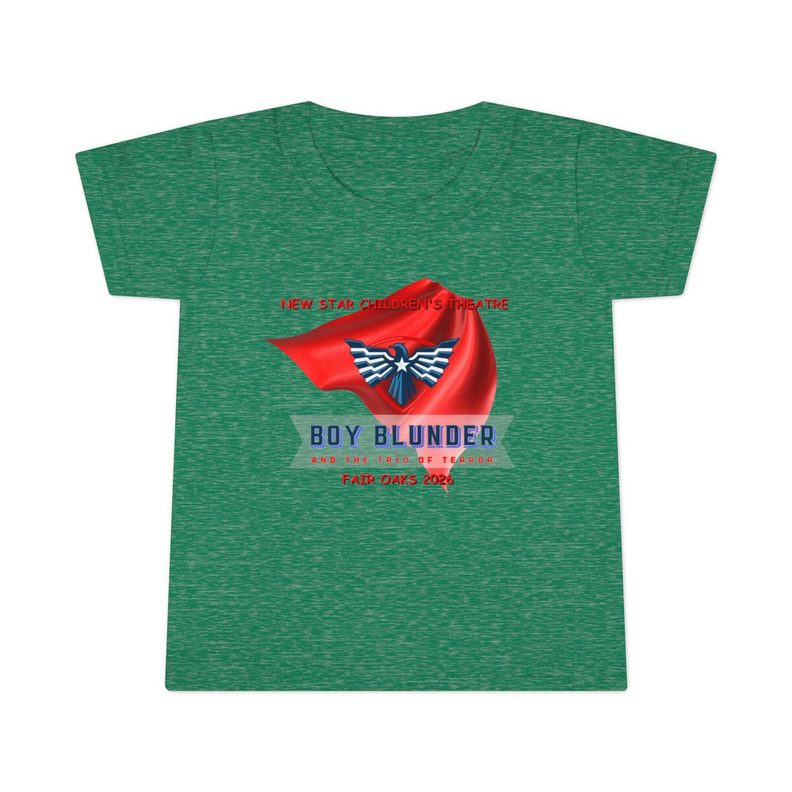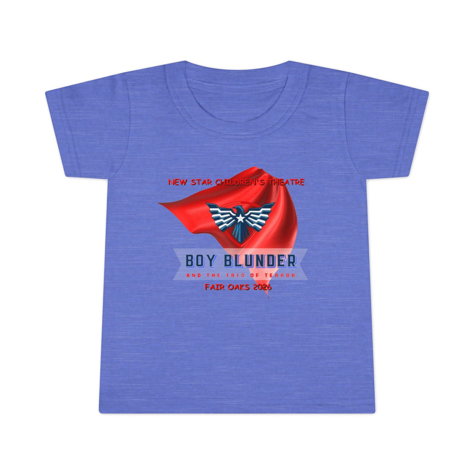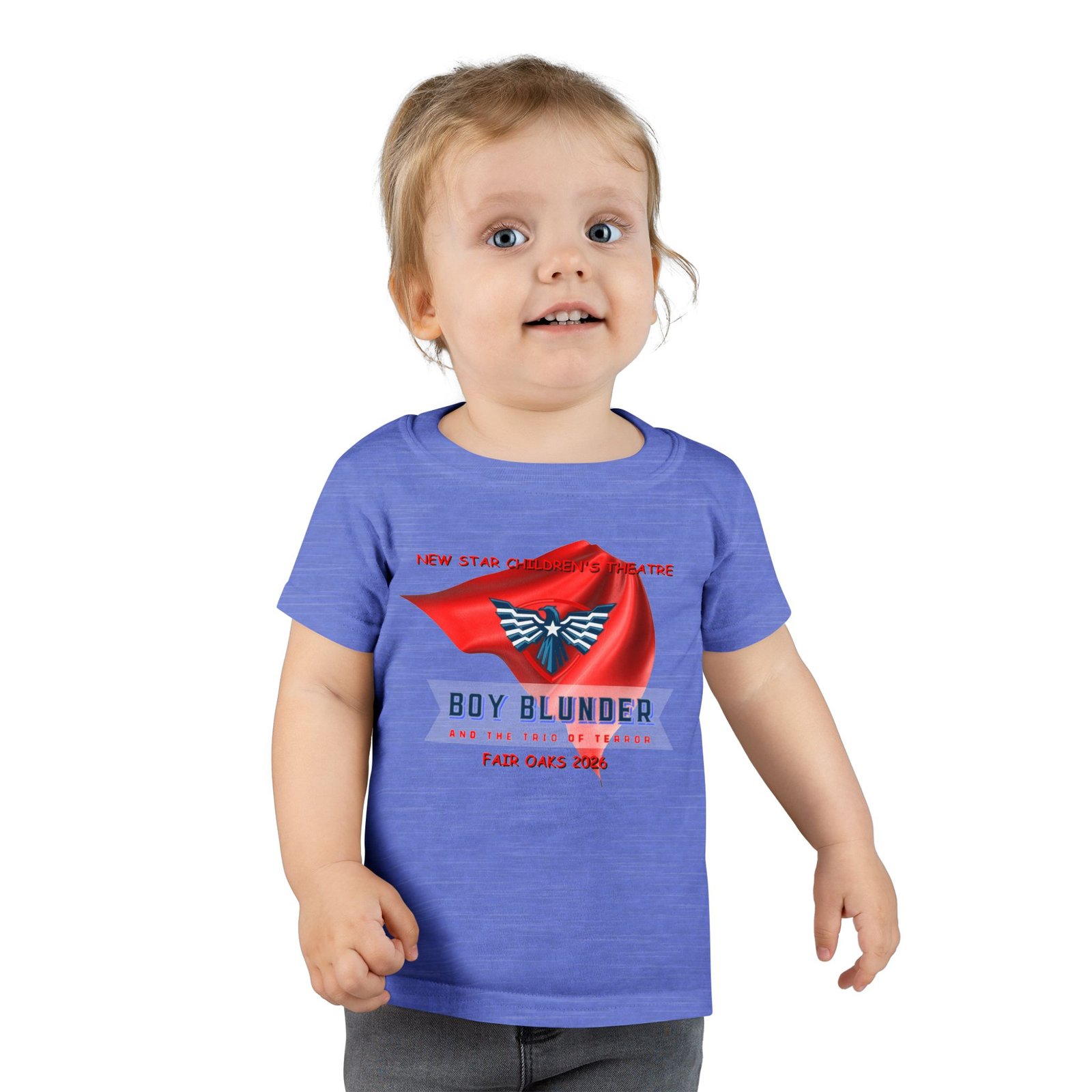 The New Star Children’s Theatre “Boy Blunder and the Trio of Terror” Toddler T-Shirt is a perfect way to let your child show their appreciation for the arts with a touch of whimsical style. Inspired by the popular performance, the shirt blends comfort and creativity. It is ideal for everyday wear or special outings; for example, attending theater events or family gatherings.