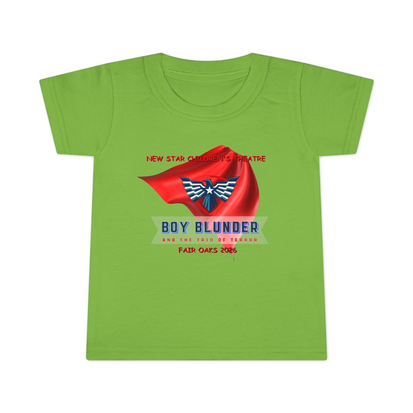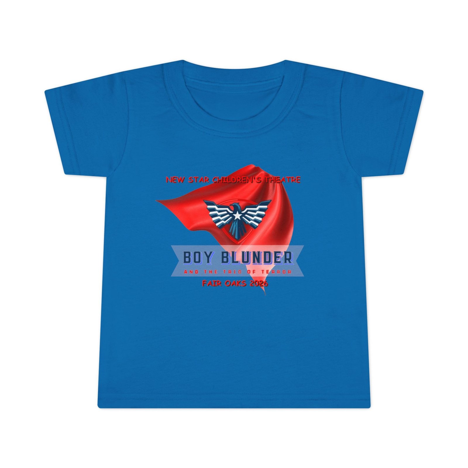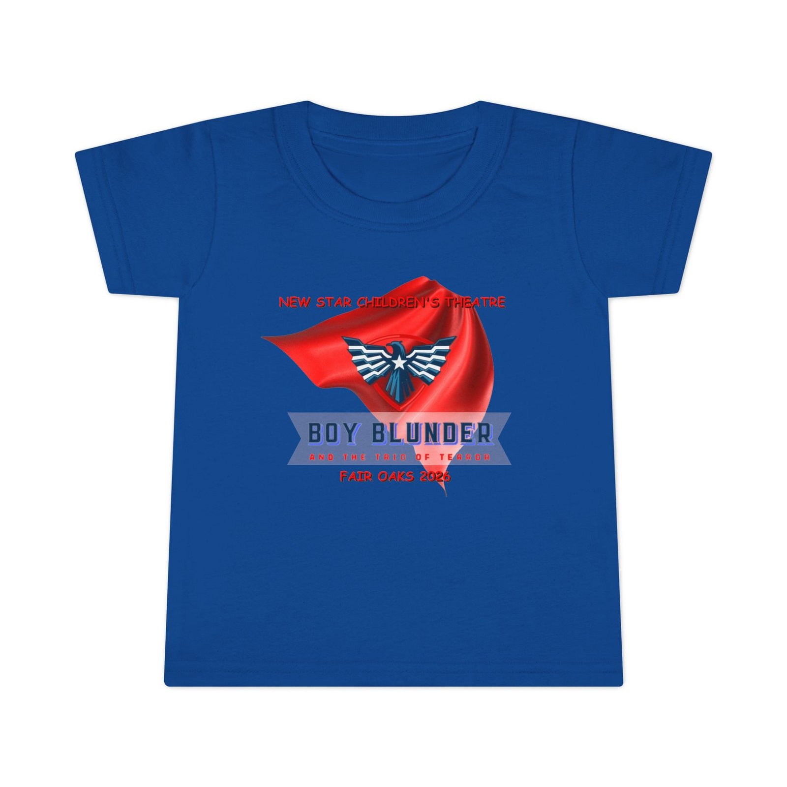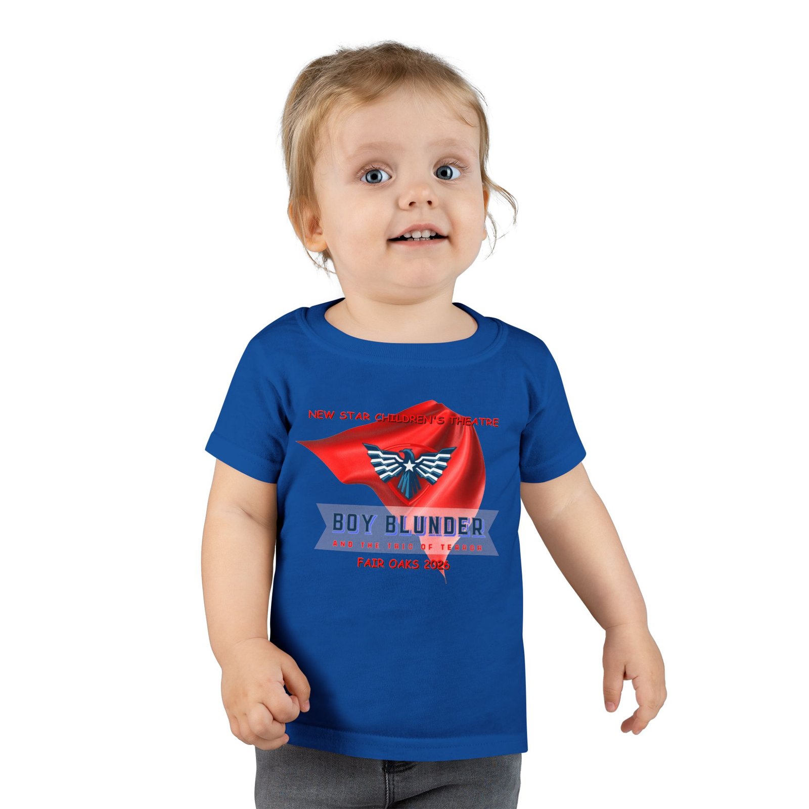 The New Star Children’s Theatre “Boy Blunder and the Trio of Terror” Toddler T-Shirt is a perfect way to let your child show their appreciation for the arts with a touch of whimsical style. Inspired by the popular performance, the shirt blends comfort and creativity. It is ideal for everyday wear or special outings; for example, attending theater events or family gatherings.